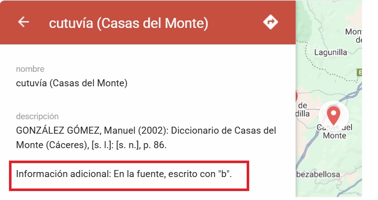 - Solo se han tomado en consideración obras en las que se recoge léxico obtenido en trabajo de campo o de forma directa en la localidad o comarca correspondiente. La única excepción a este criterio es el excelente trabajo de Juan Rodríguez Pastor titulado «El dialecto extremeño en los cuentos populares», incluido en el ALDEX porque identifica geográficamente las voces analizadas.